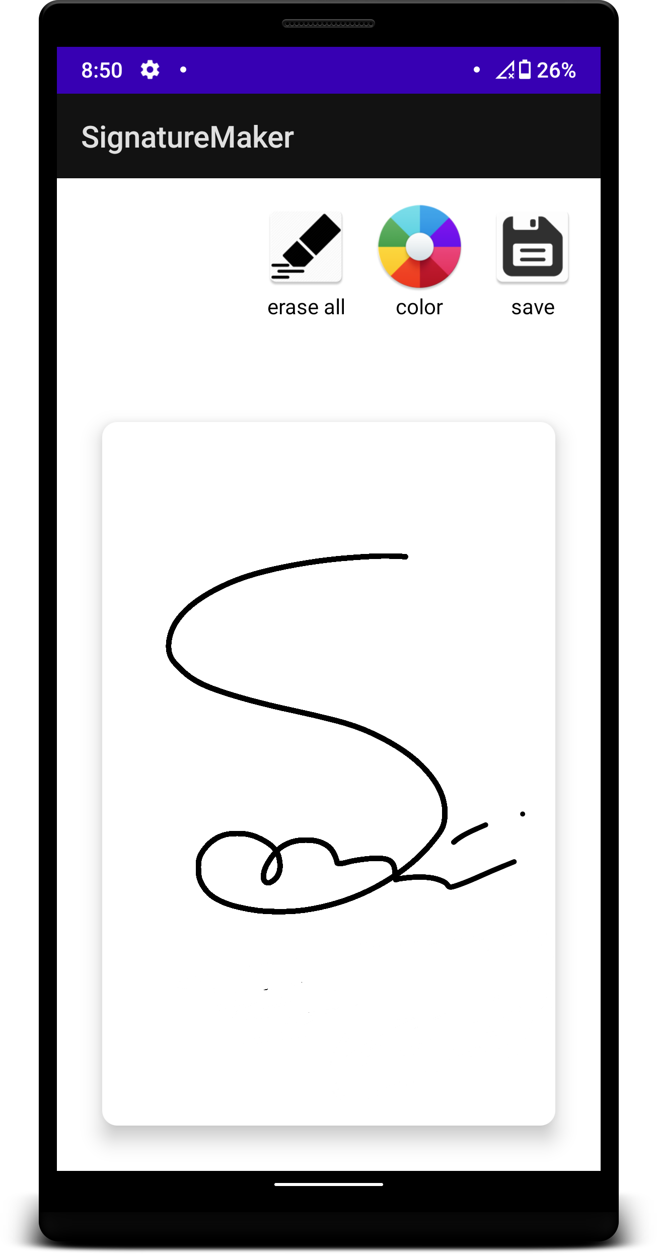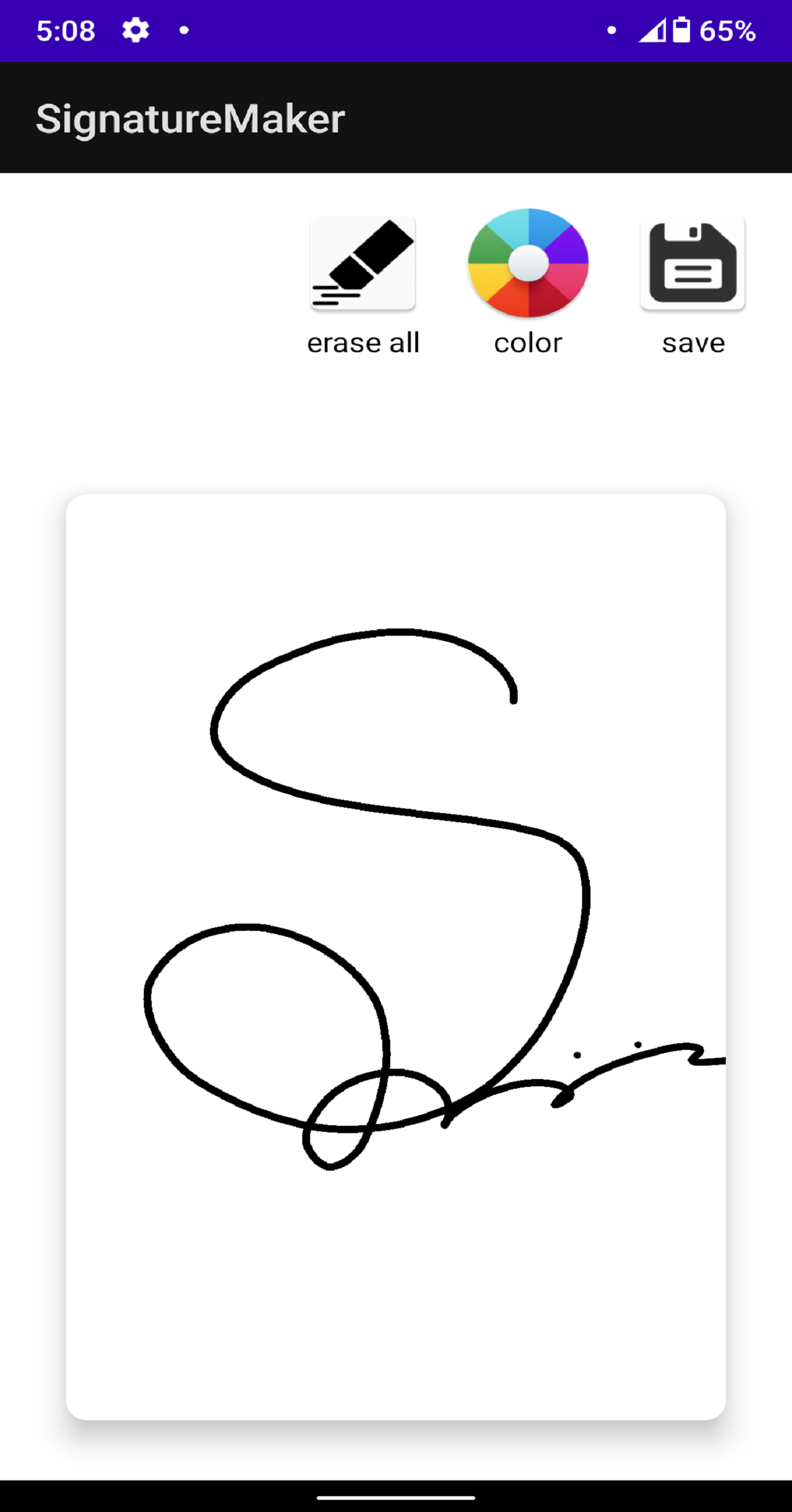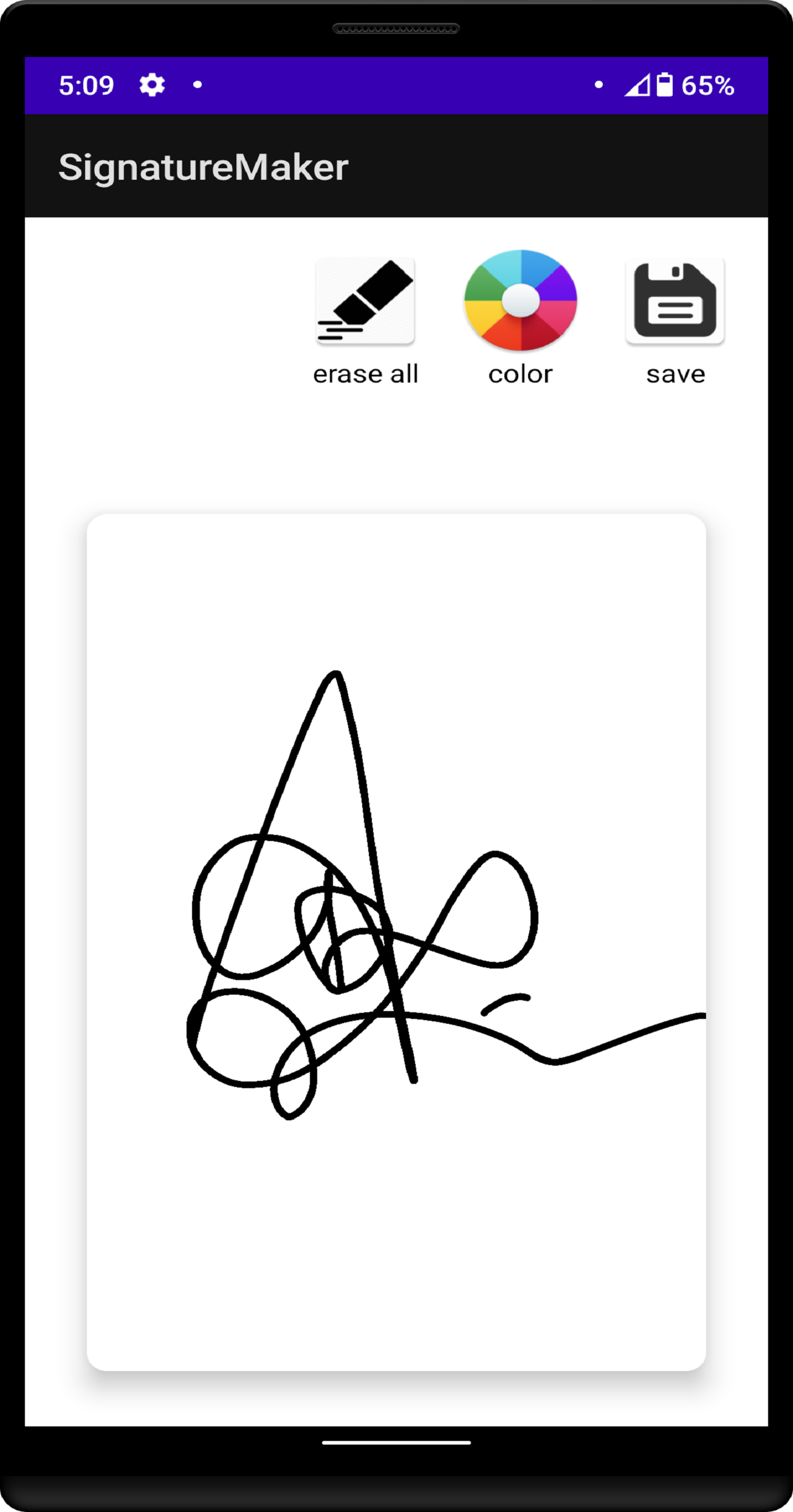 In this digital world we may need our signature to be made digitally. And also in the starting we need to practice a very nice,hard and attractive signature. It's importance can not be measured. In this app you can try and make your signature and also save to your device.